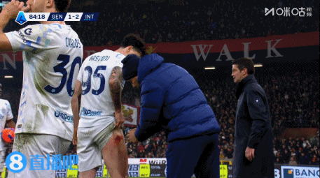 12月15日讯 国米vs热那亚第85分钟,巴斯托尼在场边处理伤口,右大腿处有流血。